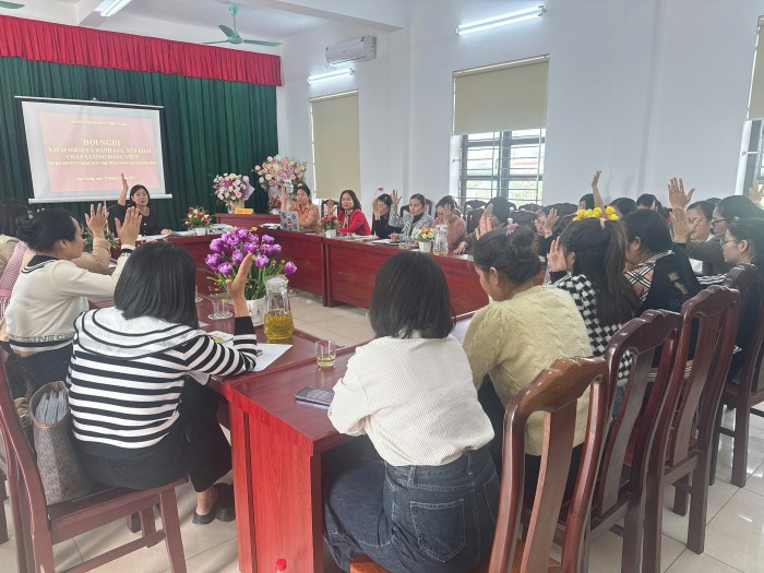 HỘI NGHỊ KIỂM ĐIỂM VÀ ĐÁNH GIÁ ,XẾP LOẠI CHẤT LƯỢNG ĐẢNG VIÊN CHI BỘ TRƯỜNG MNTT NAM GIANG 2024