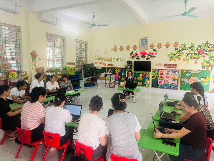 Ngày 23/08/2025, Trường mầm non Nam giang đã tổ chức tập huấn chuyên môn cho cán bộ giáo viên nội dung về: “Hướng dẫn một số ứng dụng công nghệ trong tổ chức hoạt động giáo dục trẻ mầm non”. Dưới đây là